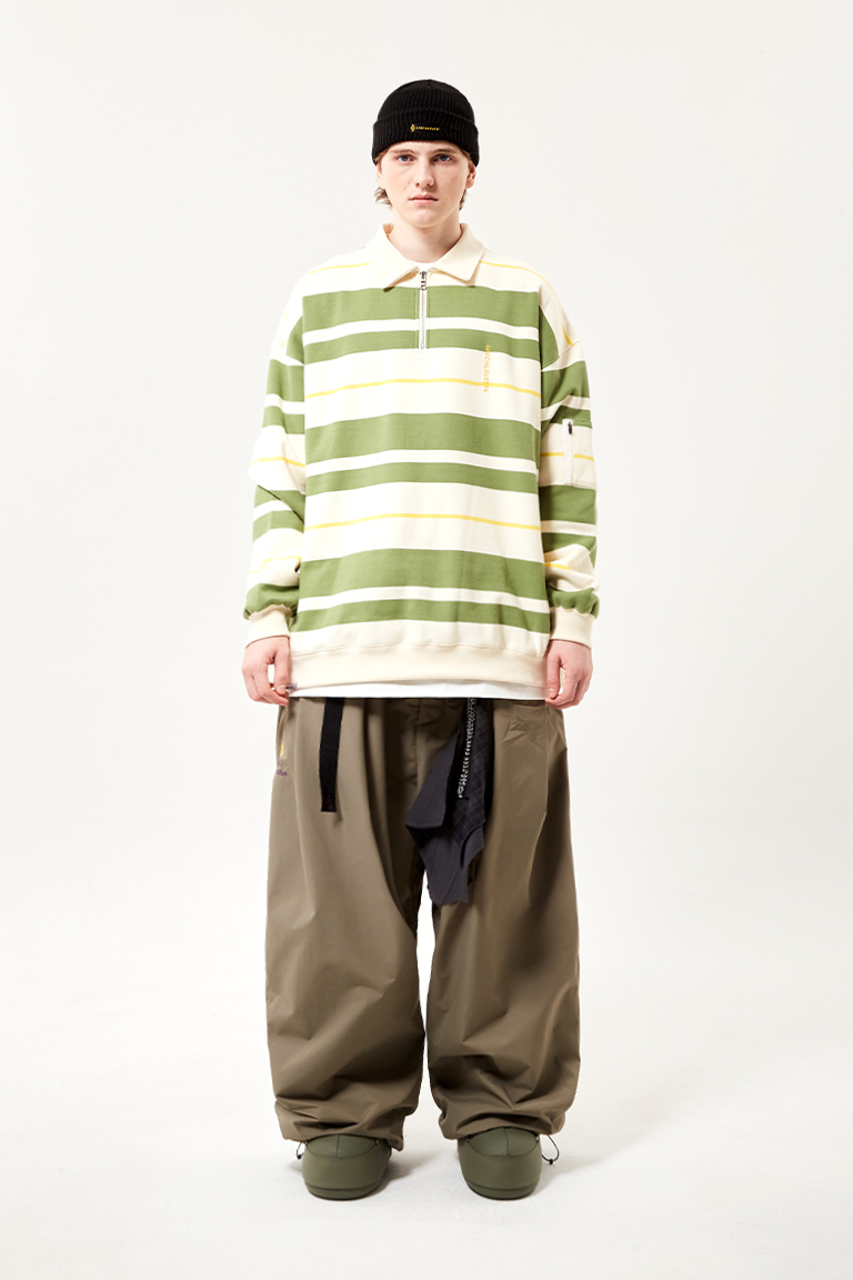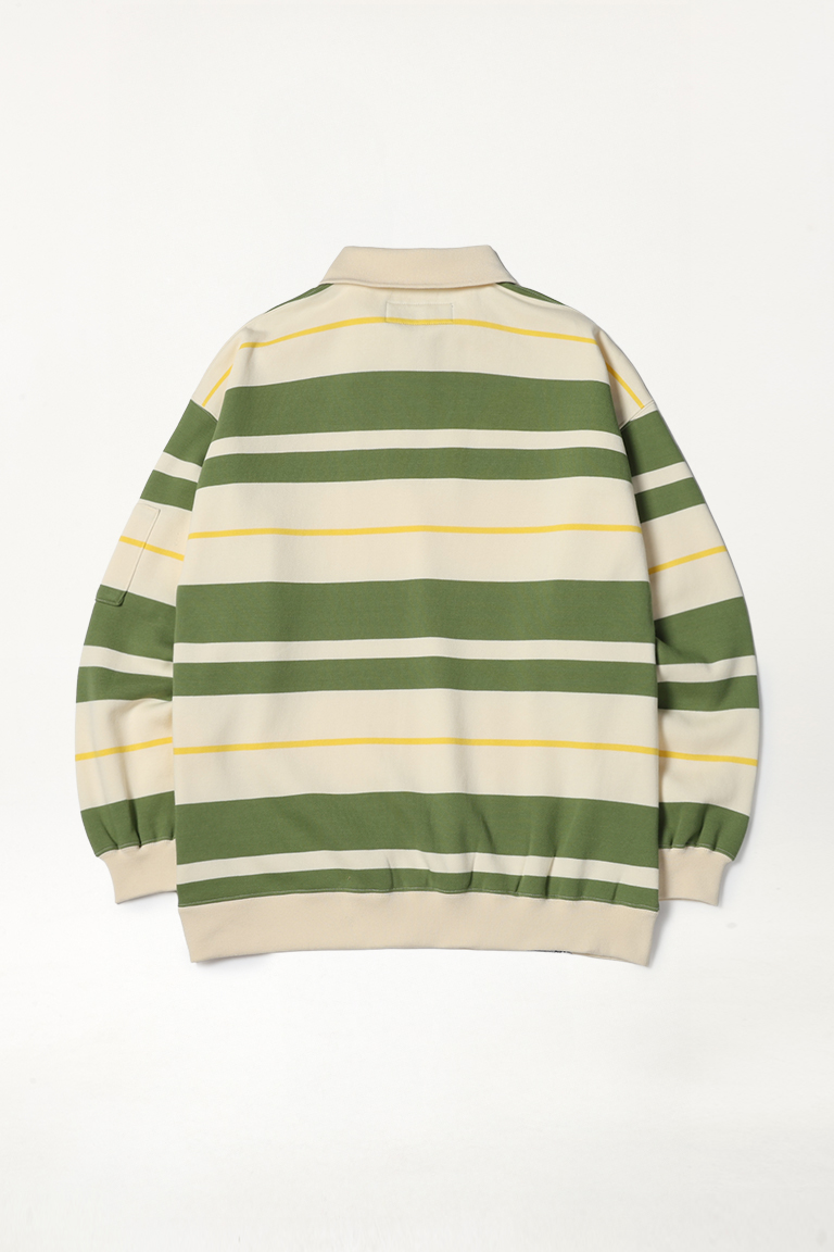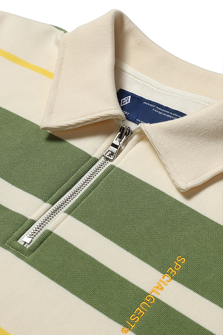 2526 SPECIALGUEST EASY STRAY STRIPED ZIP POLO2526 ½ºÆä¼È°Ô½ºÆ® ÀÌÁö ½ºÆ®·¹ÀÌ ½ºÆ®¶óÀÌÇÁ Áý Æú·Î ¼ÅÃ÷ Winter White/Matcha