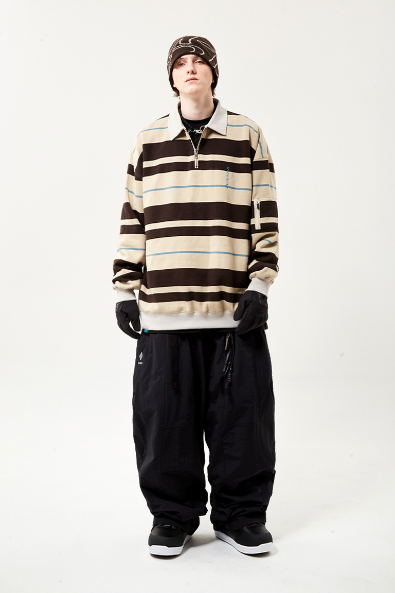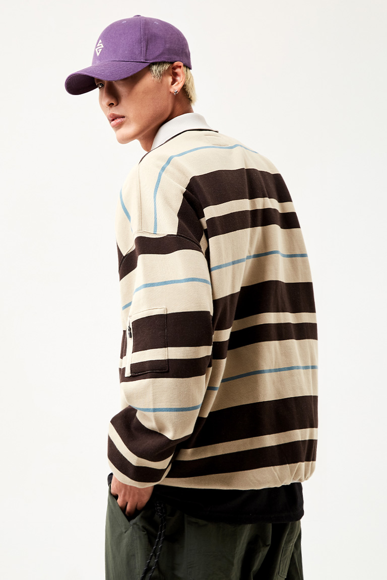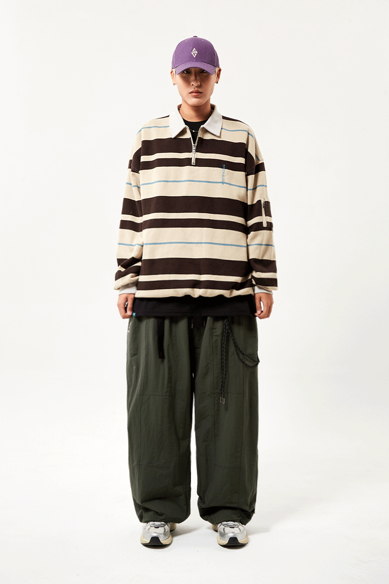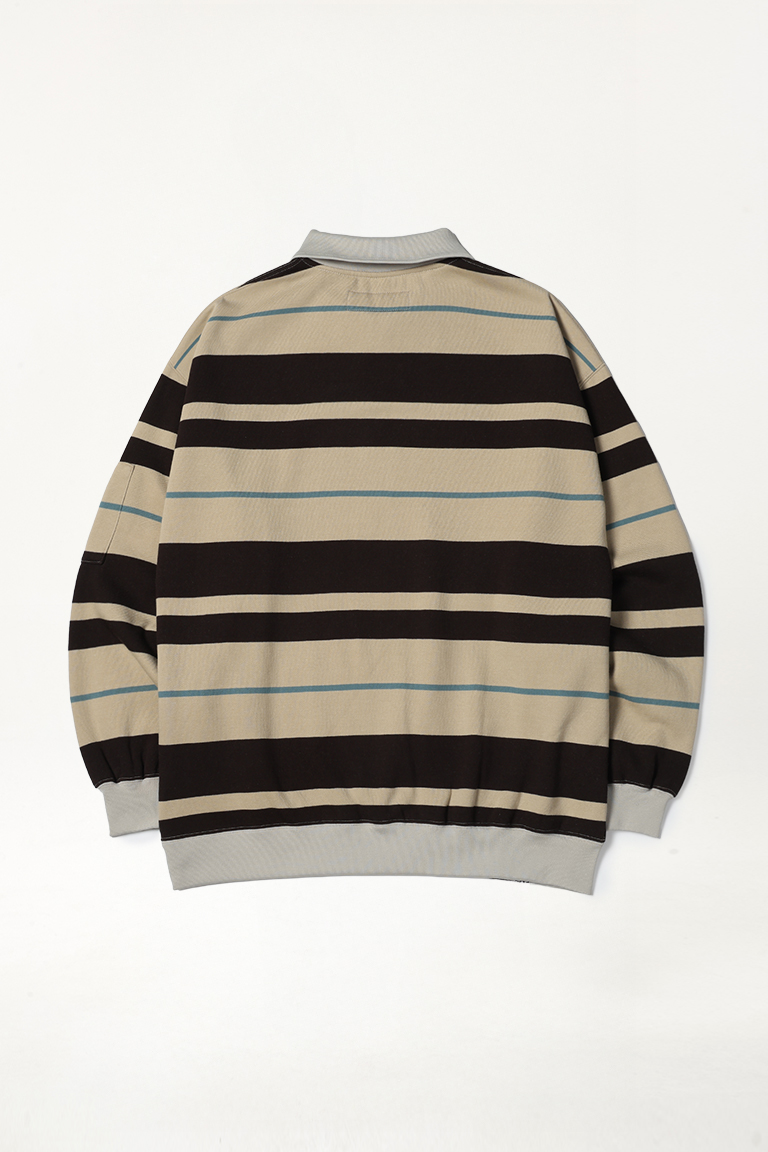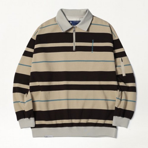 2526 SPECIALGUEST EASY STRAY STRIPED ZIP POLO2526 ½ºÆä¼È°Ô½ºÆ® ÀÌÁö ½ºÆ®·¹ÀÌ ½ºÆ®¶óÀÌÇÁ Áý Æú·Î ¼ÅÃ÷ Bleached Sand/Dark Gray