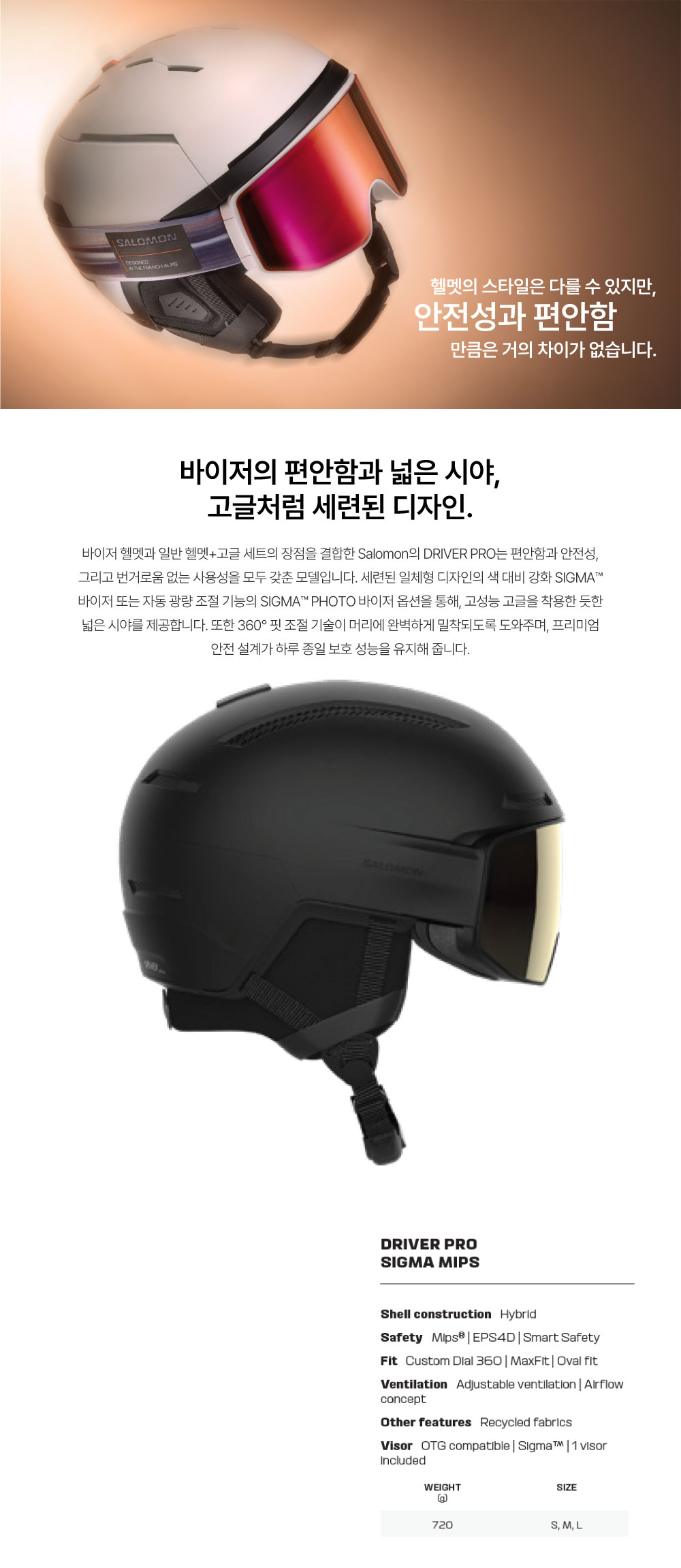 2627 SALOMON DRIVER PRO SIGMA MIPS ¿¹¾à½Ã 15%ÇÒÀÎ2627 »ì·Î¸ó Çï¸ä µå¶óÀ̹ö ÇÁ·Î ½Ã±×¸¶ ¹Ó½º BLACK